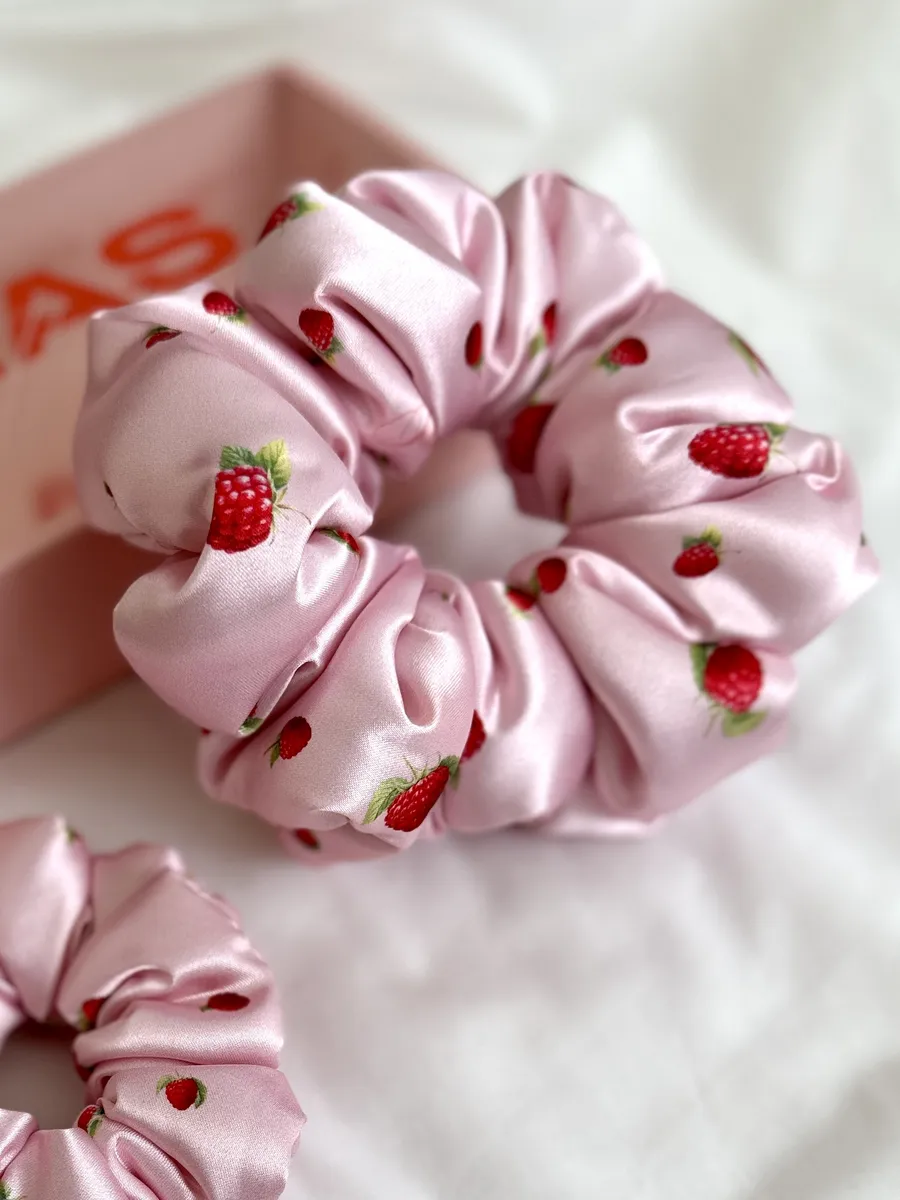 Резинки для волос jillas объемные, 2шт (M и L), вишня на розовом